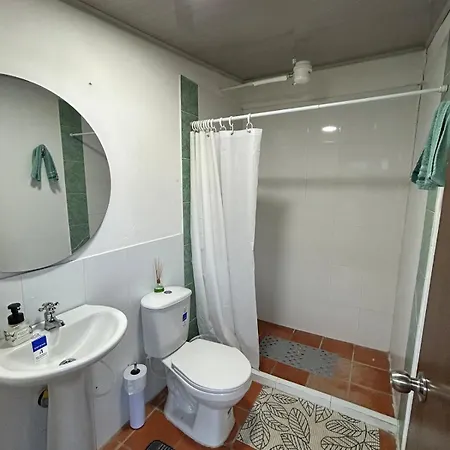 A Villa San Carlos-Casa Familiar Con Amplio Jardin egy zuhanyzóval felszerelt fürdőszobával rendelkezik. Fürdőlepedők szintén elérhető.